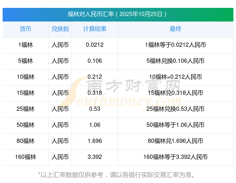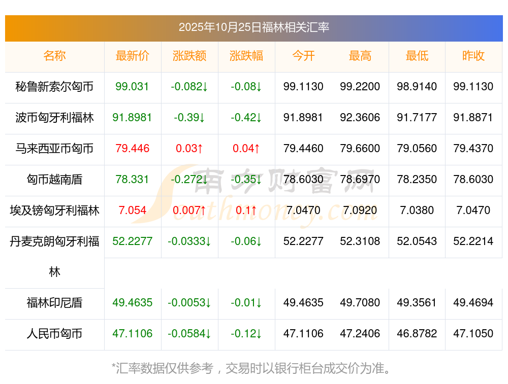 福林匯率一覽表 今日福林兌換人民幣換算多少?2025/10/25