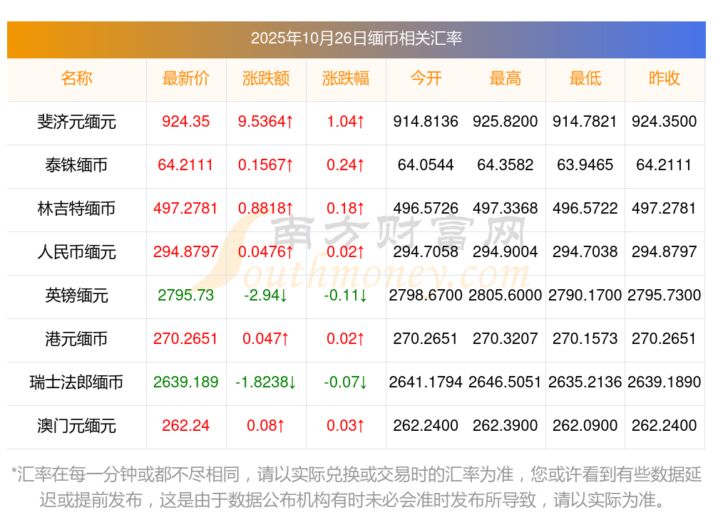 南方財富網為您提供緬幣對越南幣匯率最新價格詳情。