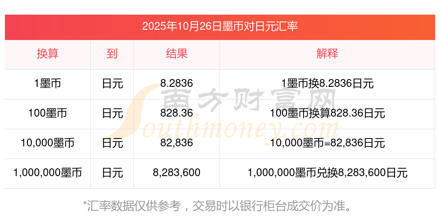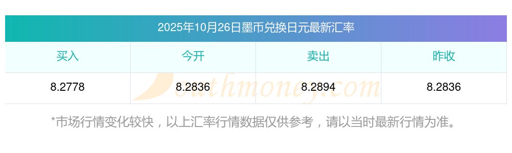 最新墨幣對日元匯率是多少?