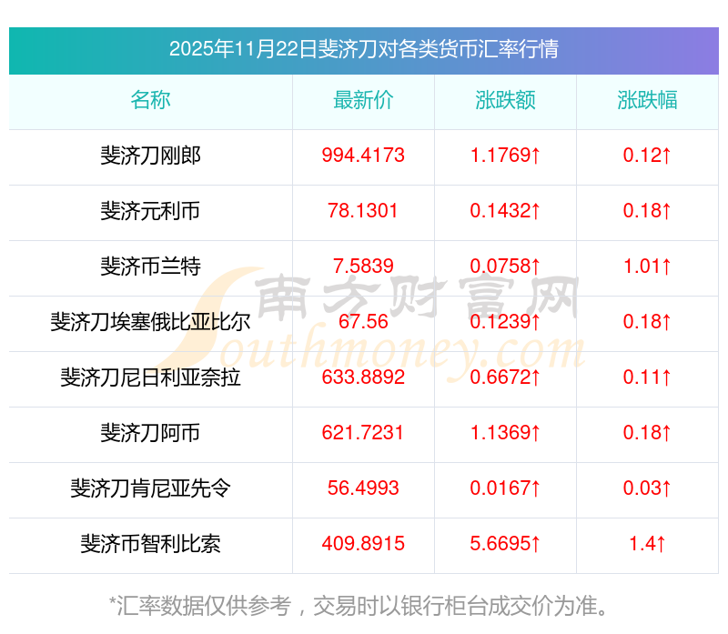 2025年11月22日斐濟(jì)刀相關(guān)匯率查詢