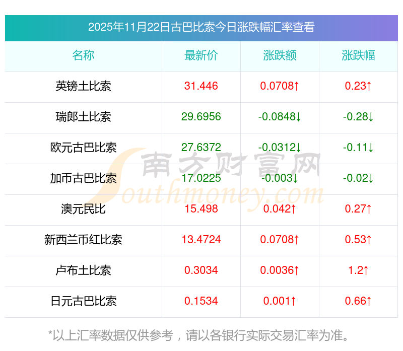 匯率在每一分鐘或都不盡相同,請以實際兌換或交易時的匯率為準,您或許看到有些數(shù)據(jù)延遲或提前發(fā)布,這是由于數(shù)據(jù)公布機構(gòu)有時未必會準時發(fā)布所導致,請以實際為準。