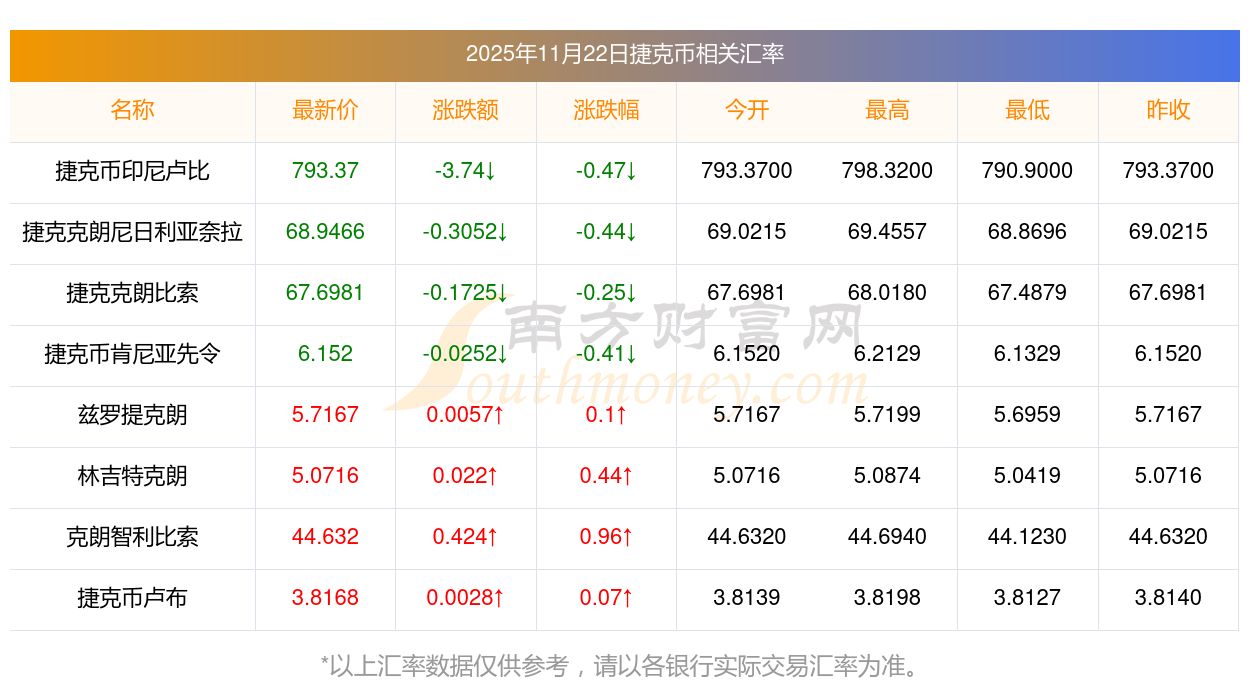 2025年11月22日捷克幣相關(guān)匯率查詢