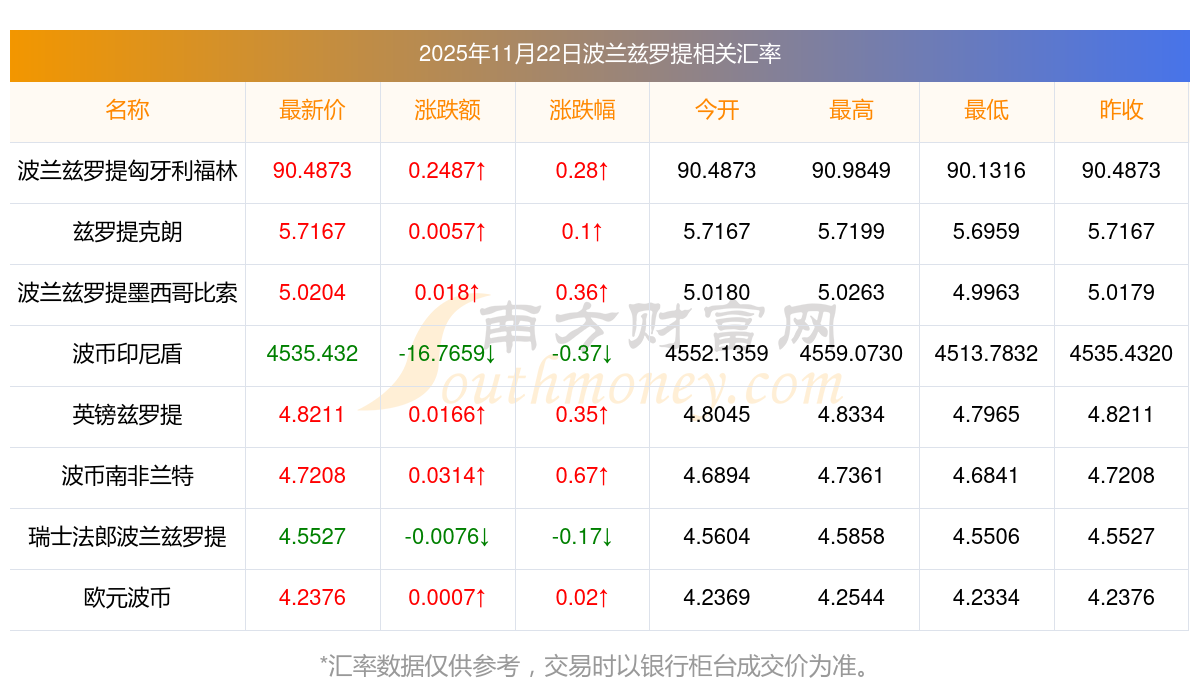 2025年11月22日波蘭茲羅提相關(guān)匯率查詢