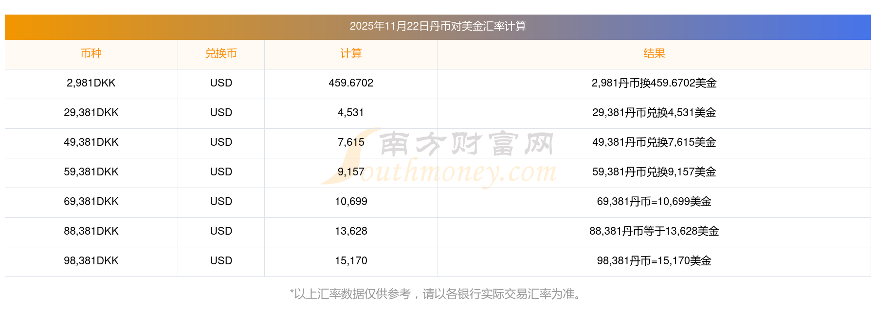 1丹幣=0.1542美金