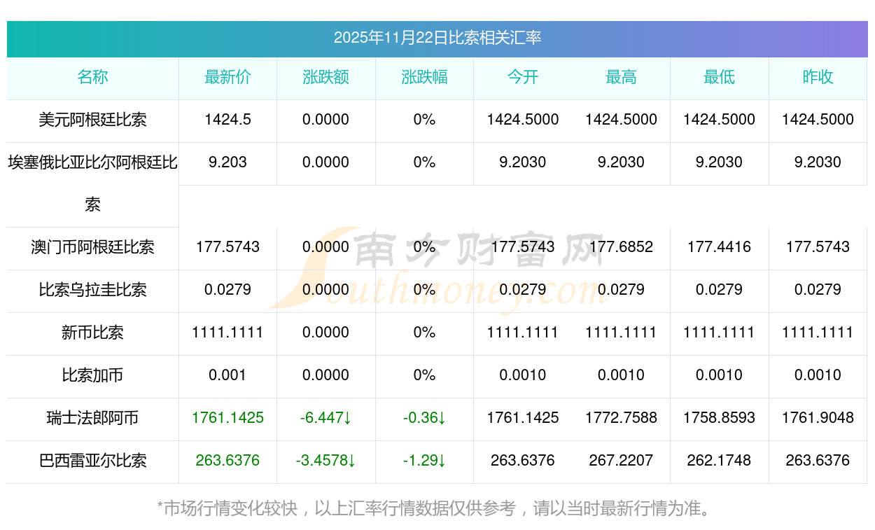 根據(jù)2025年11月22日匯率計算,ARS兌換UYU匯率最新價0.027900:今日開價0.0279,昨日收價0.0279,最高價0.0279,最低價0.0279。