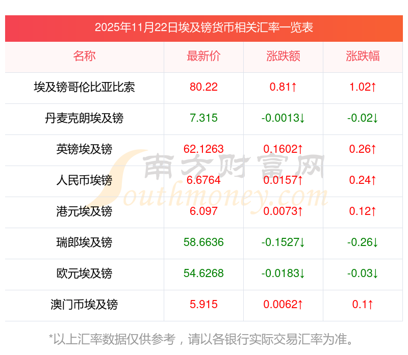 2025年11月22日埃及鎊相關(guān)匯率查詢