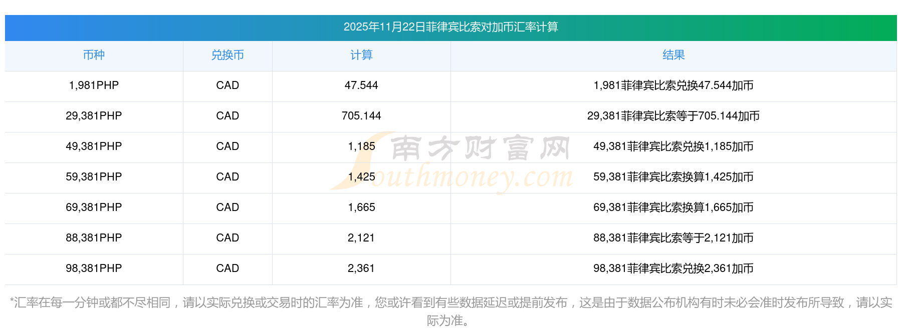 今日外匯市場(chǎng)_現(xiàn)在菲律賓比索對(duì)加幣匯率價(jià)多少?2025-11-22