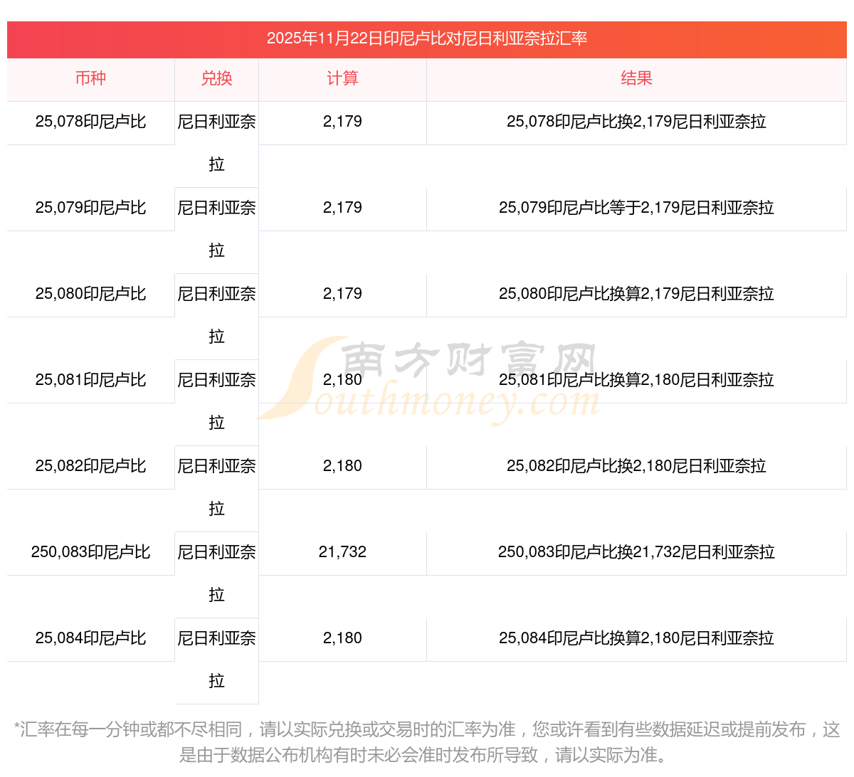 現(xiàn)在印尼盧比轉(zhuǎn)換尼日利亞奈拉匯率_外匯市場行情 2025年11月22日
