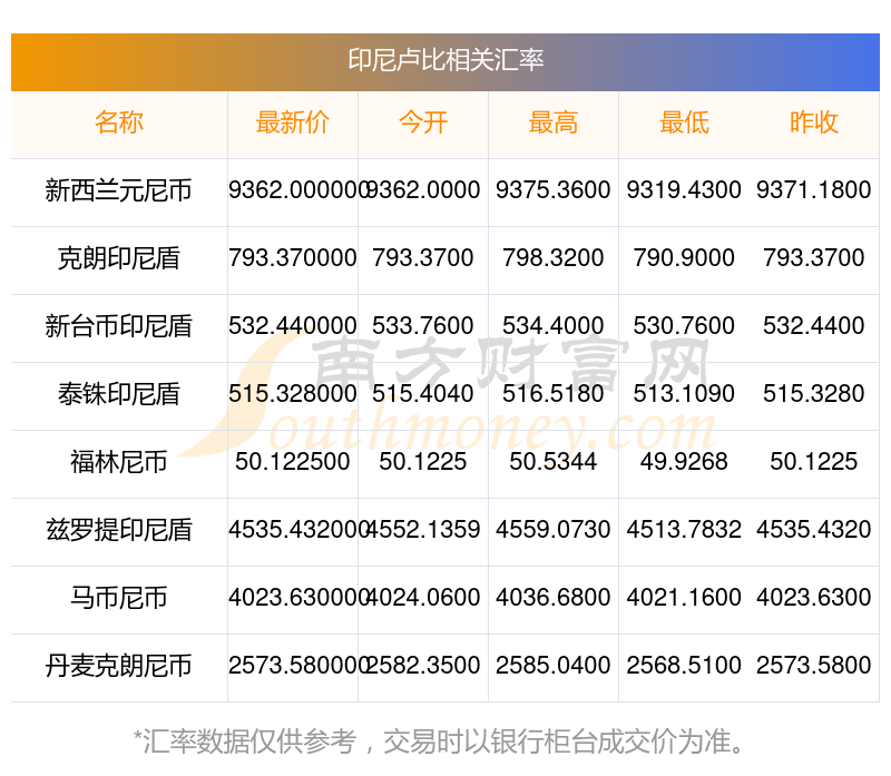 南方財富網(wǎng)為您提供印尼盧比對尼日利亞奈拉匯率最新價格詳情。