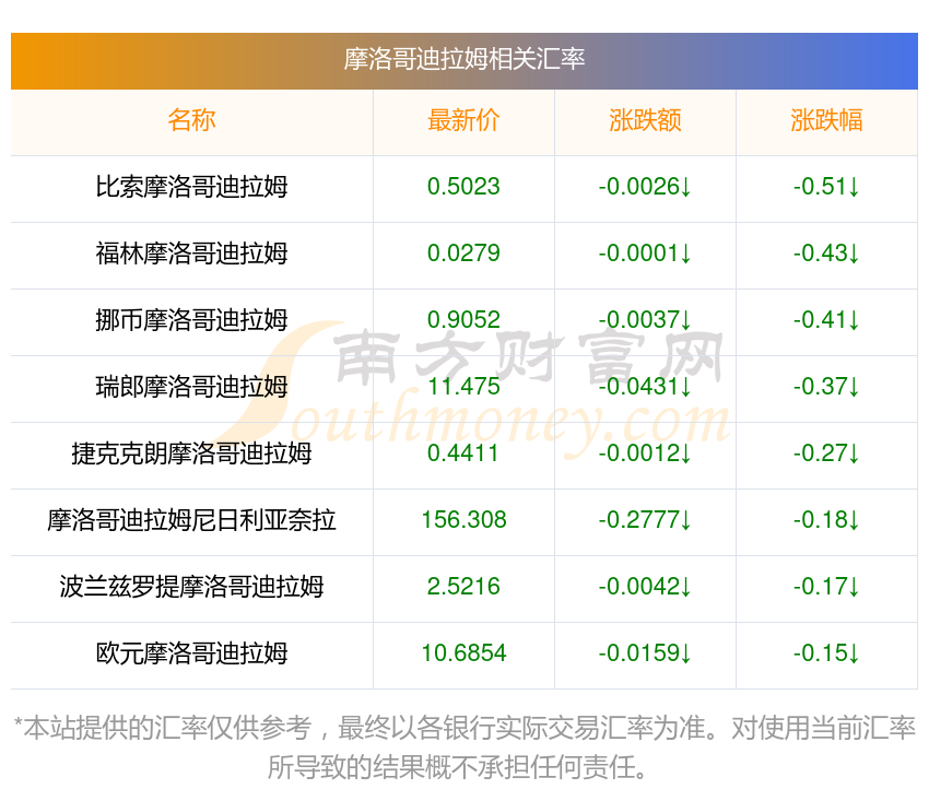 南方財富網(wǎng)為您提供摩洛哥迪拉姆對剛郎匯率最新價格詳情。