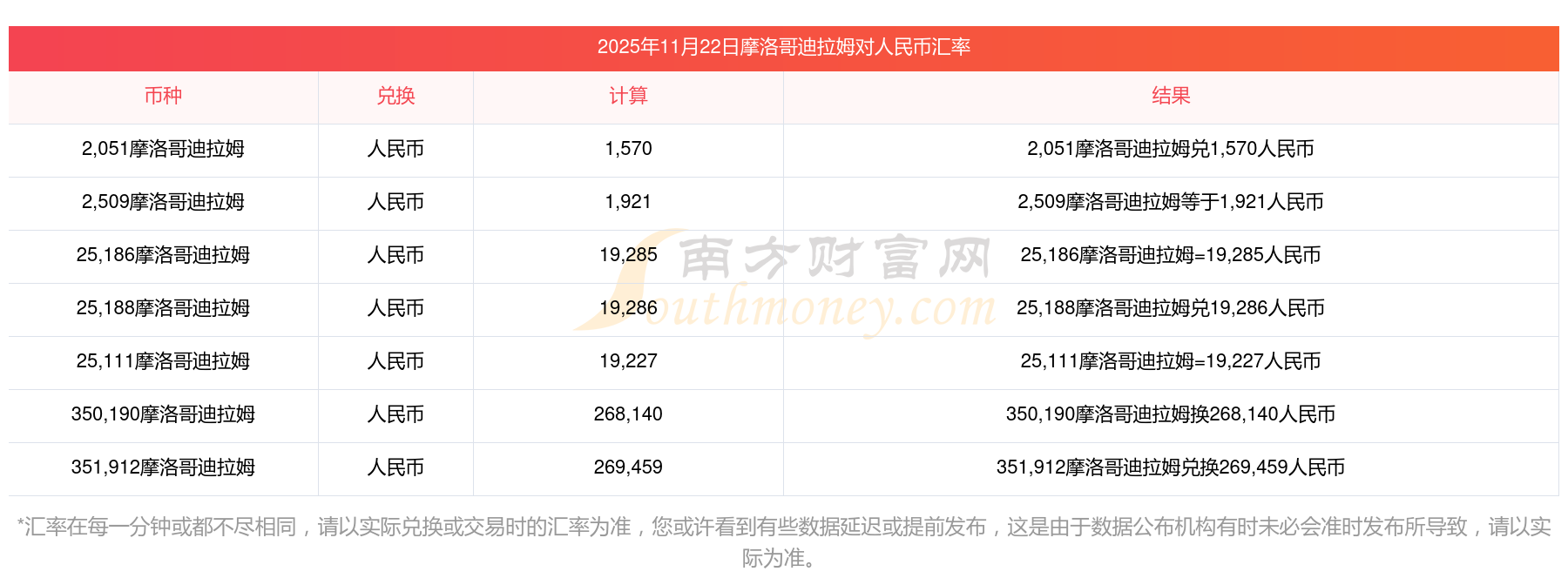 今天1摩洛哥迪拉姆兌換人民幣的折算匯率是多少 附查詢方法11月22日