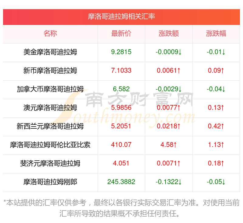 南方財富網(wǎng)為您提供摩洛哥迪拉姆對人民幣匯率最新價格詳情。