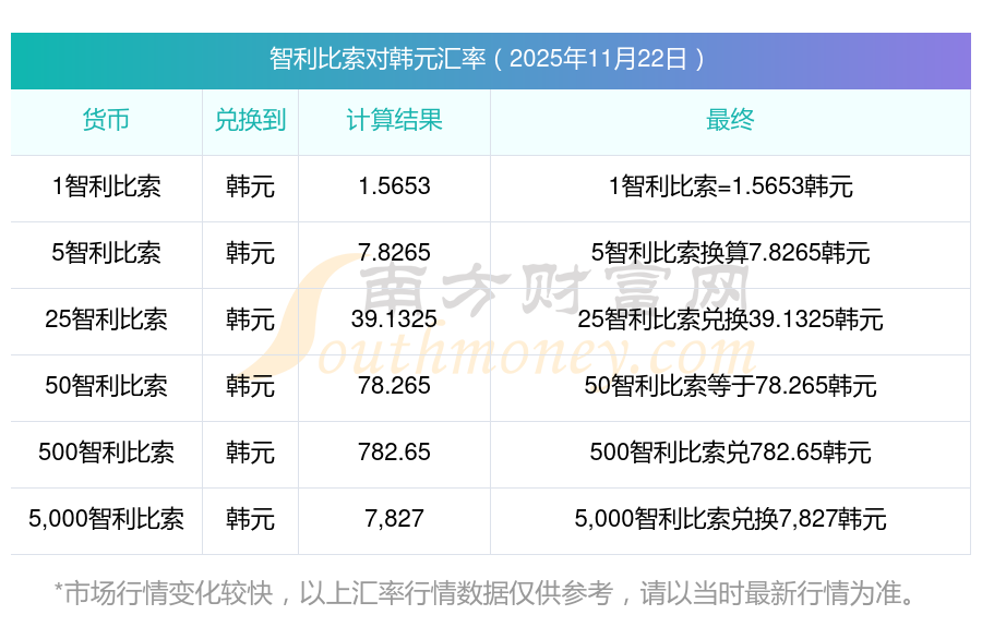 6兌換為 | 將智利比索轉(zhuǎn)換為韓元是多少? 2025-11-22