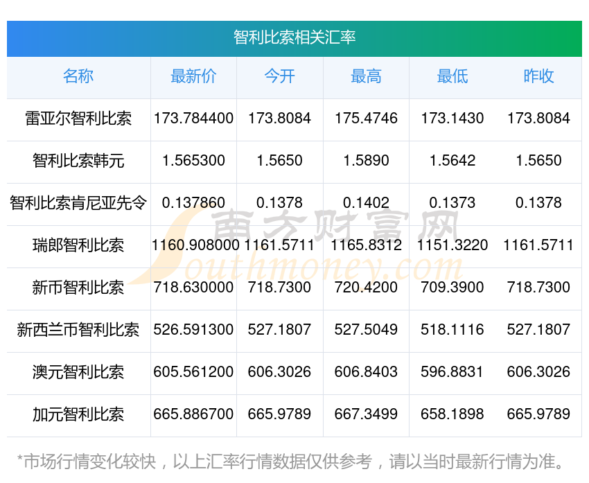 南方財(cái)富網(wǎng)為您提供智利比索對韓元匯率最新價(jià)格詳情。