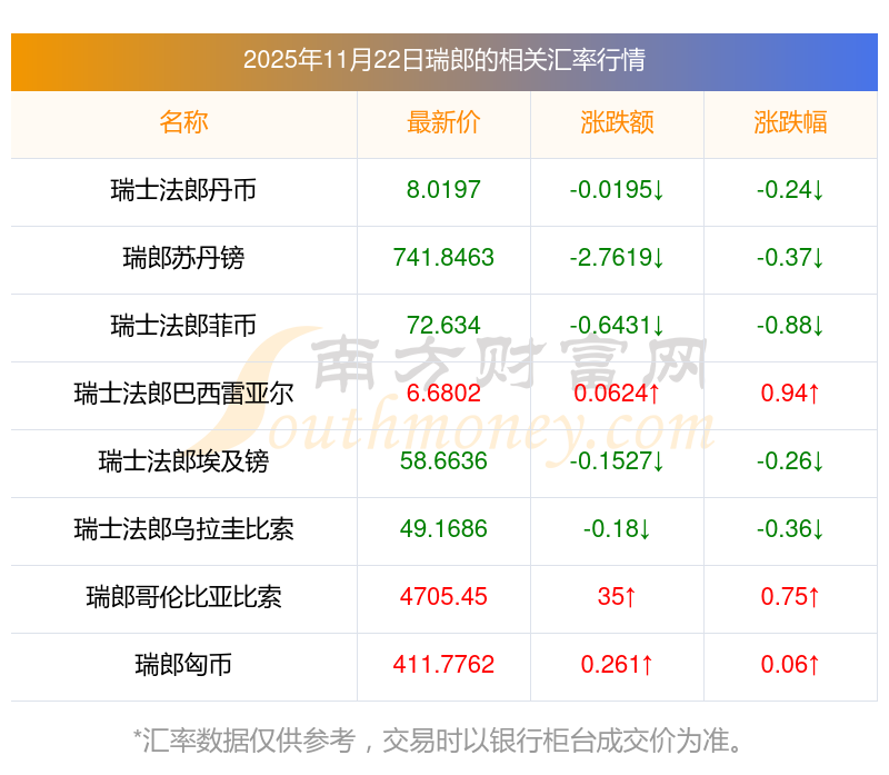 2025年11月22日瑞郎相關(guān)匯率查詢