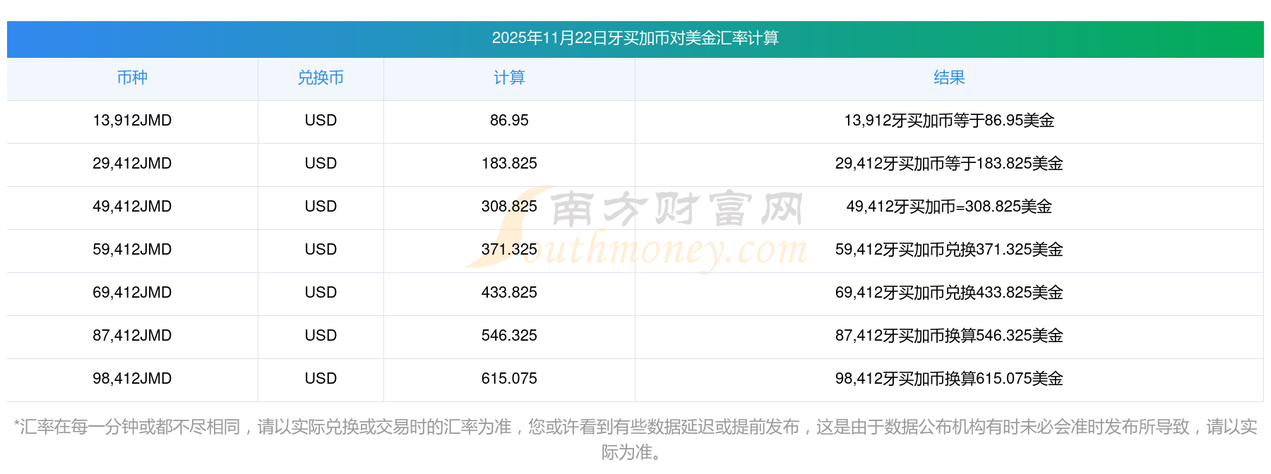 匯率查詢 | 9萬牙買加幣轉(zhuǎn)換美金匯率是多少? 11月22日