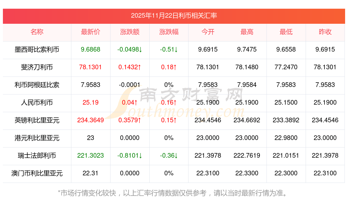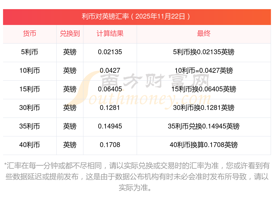 今日利幣對英鎊最新匯率查詢表2025/11/22