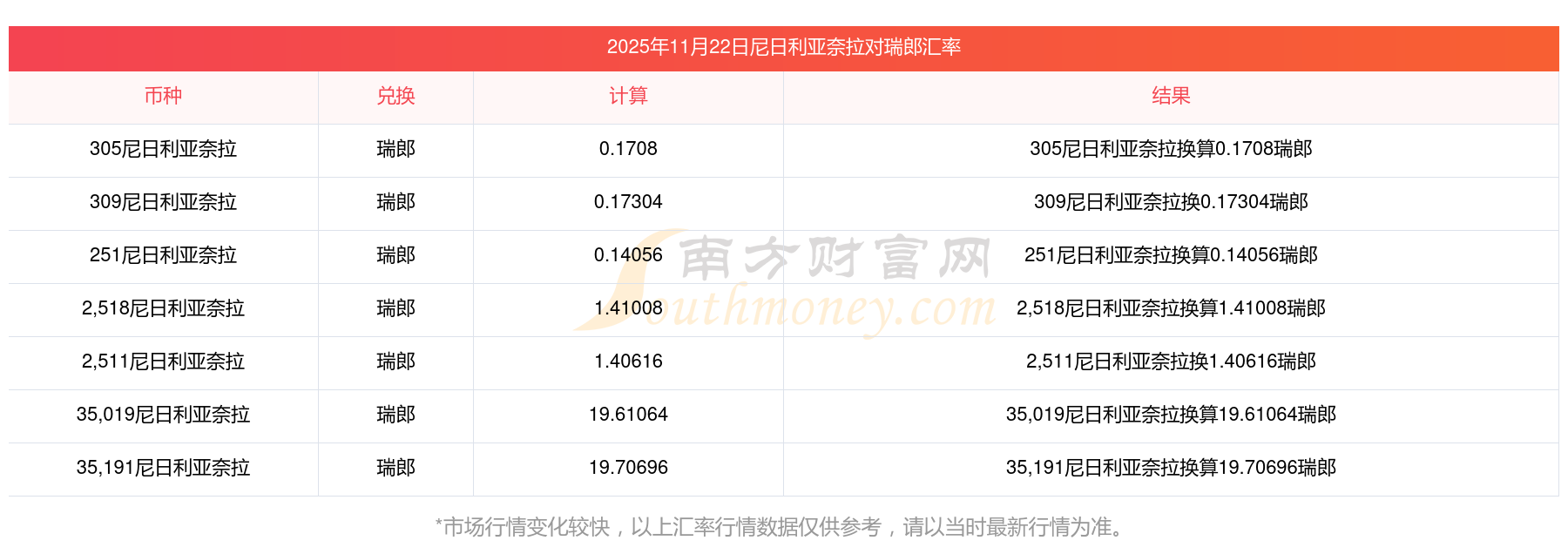 今日尼日利亞奈拉轉(zhuǎn)換瑞郎匯率實(shí)時匯率換算 2025-11-22