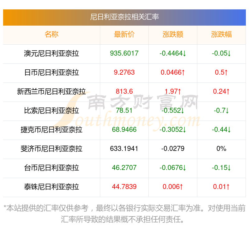 南方財富網(wǎng)為您提供尼日利亞奈拉對瑞郎匯率最新價格詳情。