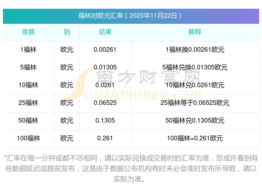南方財富網(wǎng)為您提供福林對歐元匯率最新價格詳情。