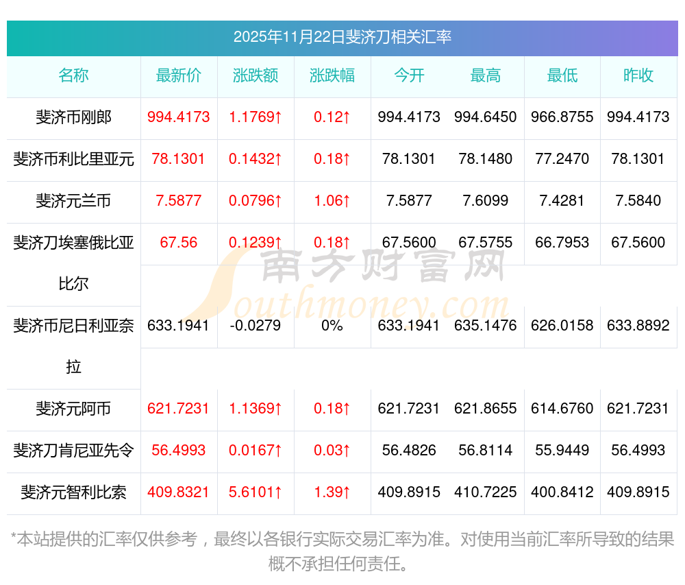 2025年11月22日斐濟刀相關(guān)匯率查詢