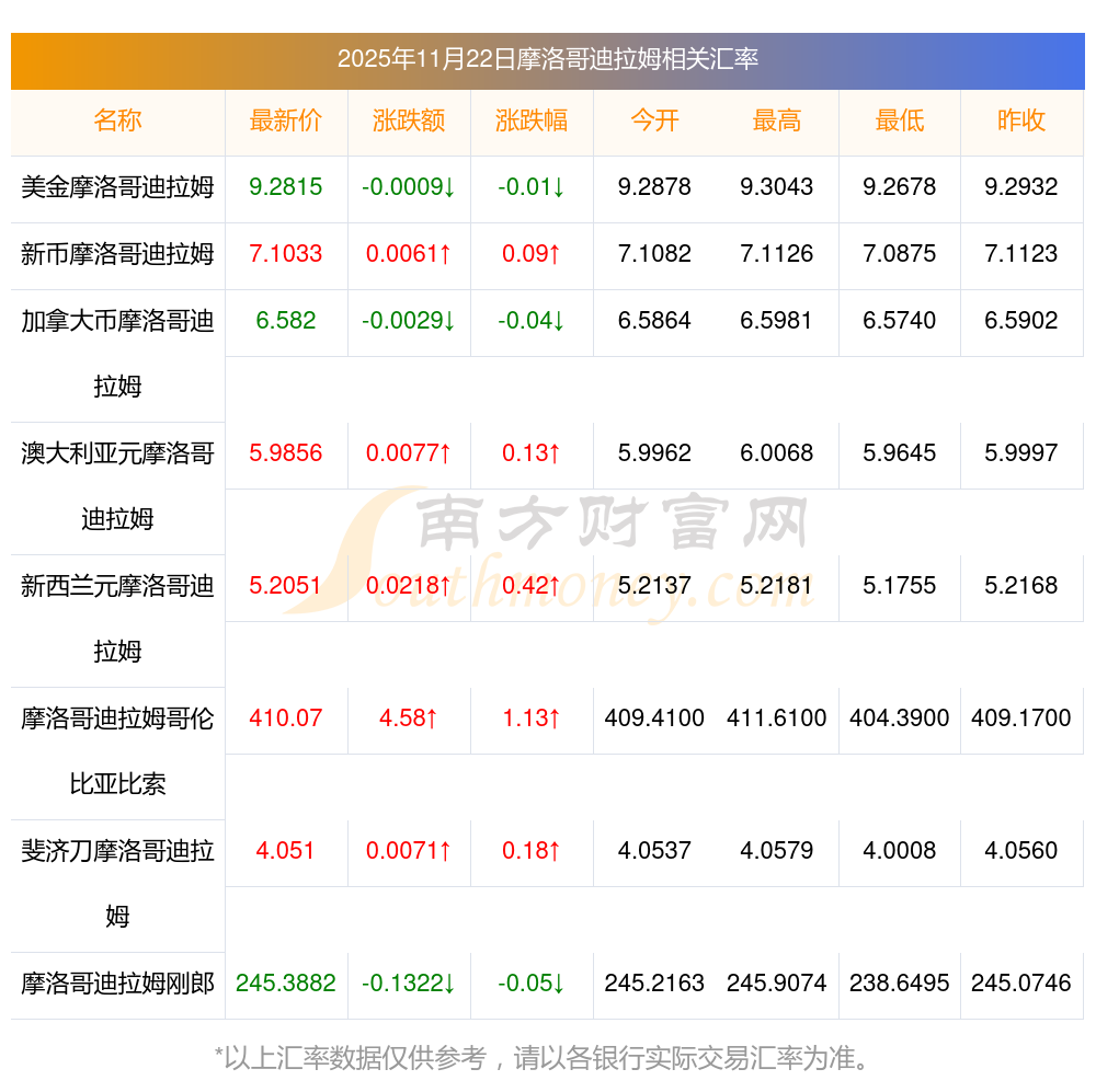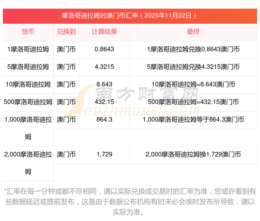 匯率換算 今天摩洛哥迪拉姆兌澳門幣是多少11月22日
