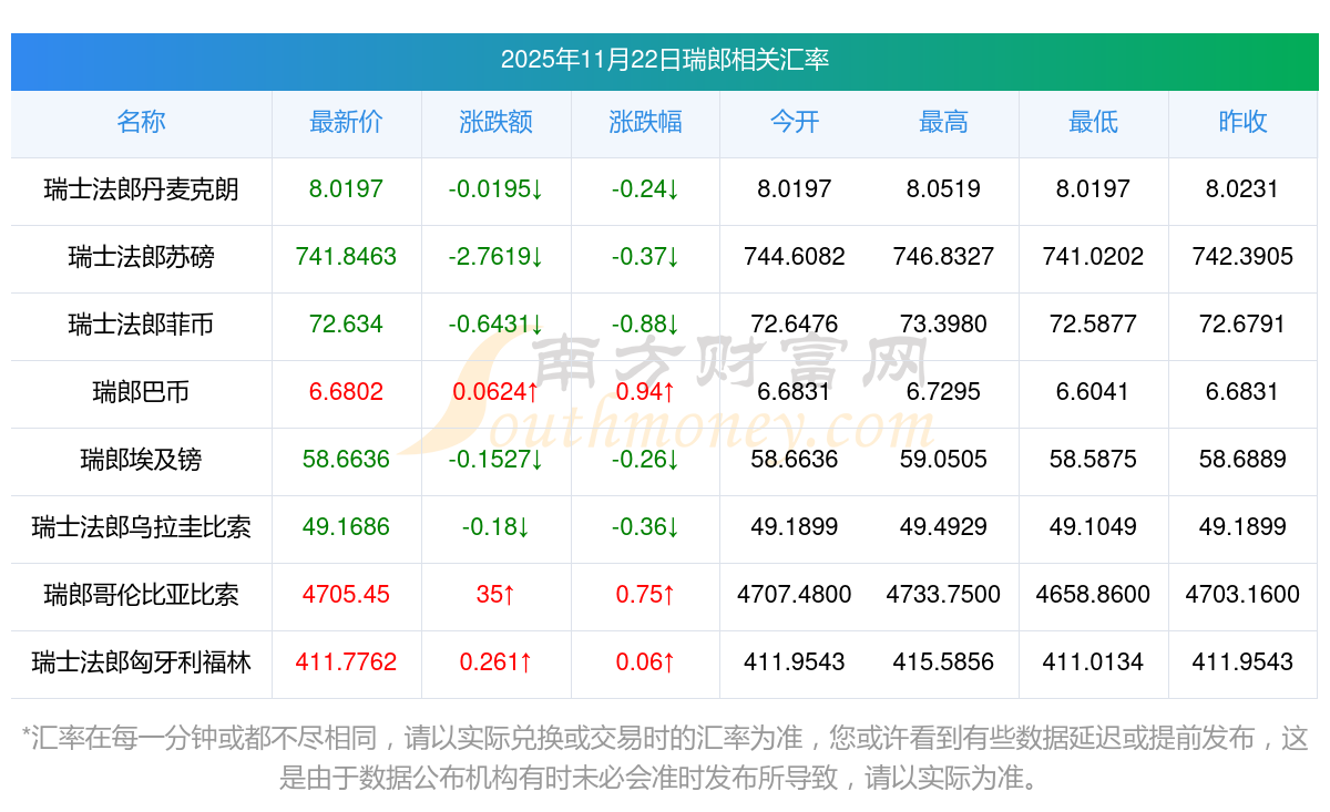 2025年11月22日瑞郎相關(guān)匯率查詢