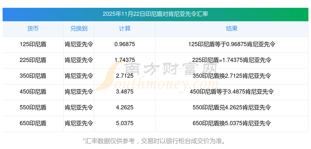 南方財(cái)富網(wǎng)為您提供印尼盾兌換肯尼亞先令匯率最新價(jià)格詳情。