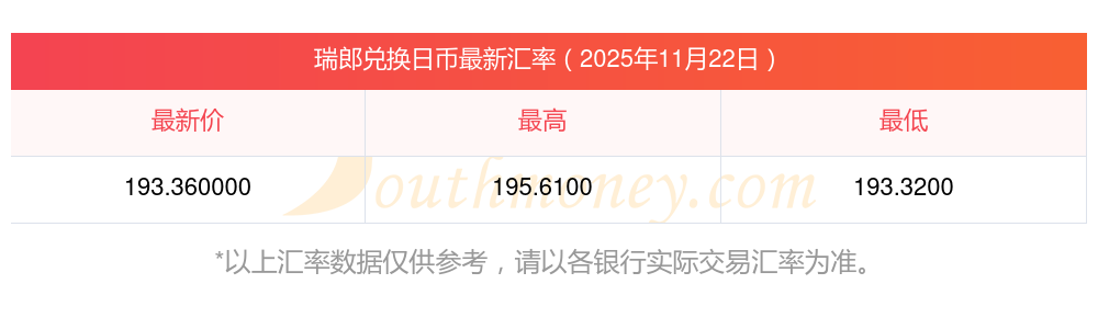 瑞士法郎今日匯率調整:瑞士法郎對日元匯率多少?2025-11-22