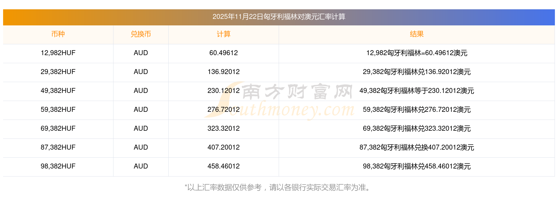 2025年11月22日今日匈牙利福林匯率-匈牙利福林2兌換澳元匯率多少?