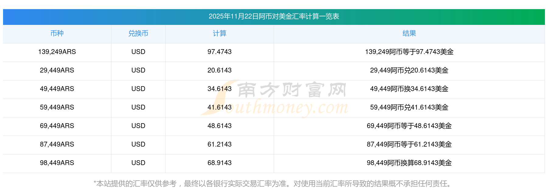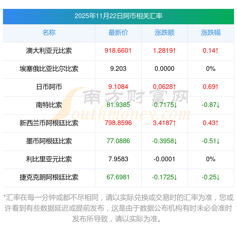 今日結(jié)匯行情:今日阿幣對美金匯率是多少?2025-11-22