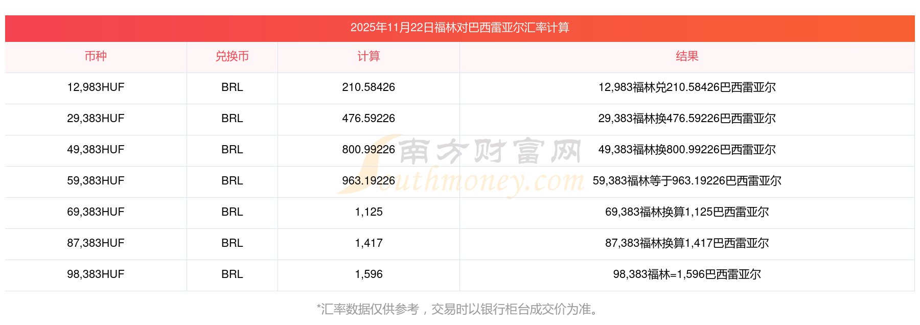 南方財(cái)富網(wǎng)為您提供福林對(duì)巴西雷亞爾匯率最新價(jià)格詳情。