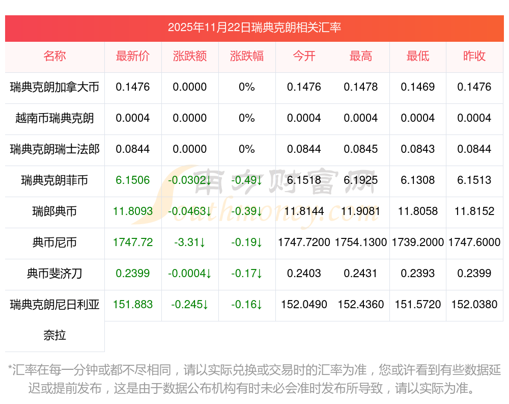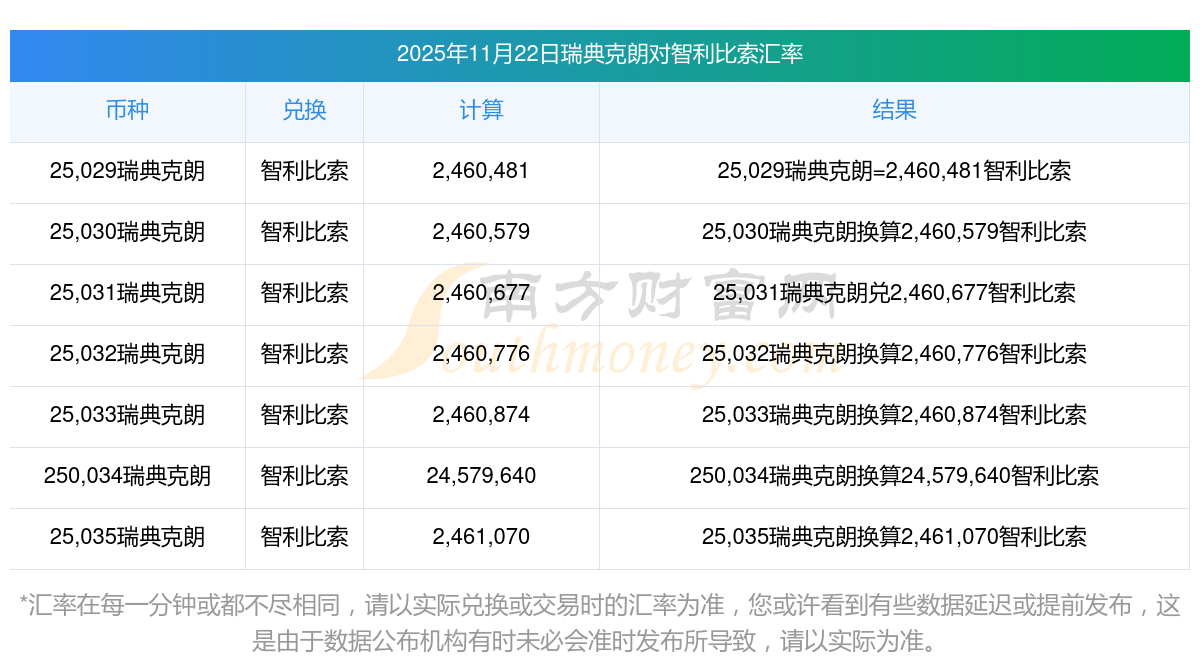 新匯率,今日瑞典克朗對智利比索匯率多少?2025年11月22日