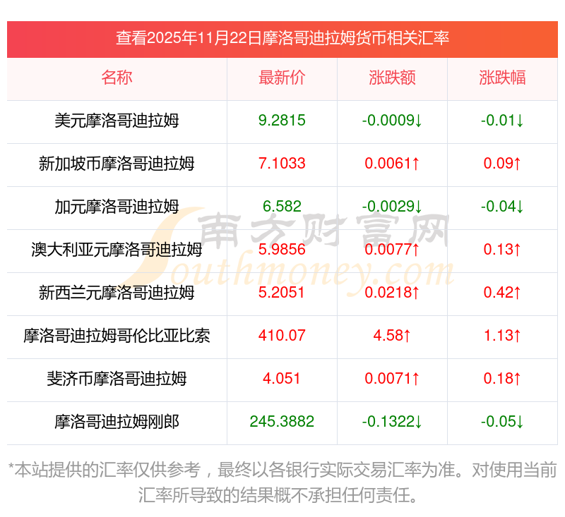 2025年11月22日摩洛哥迪拉姆相關(guān)匯率查詢