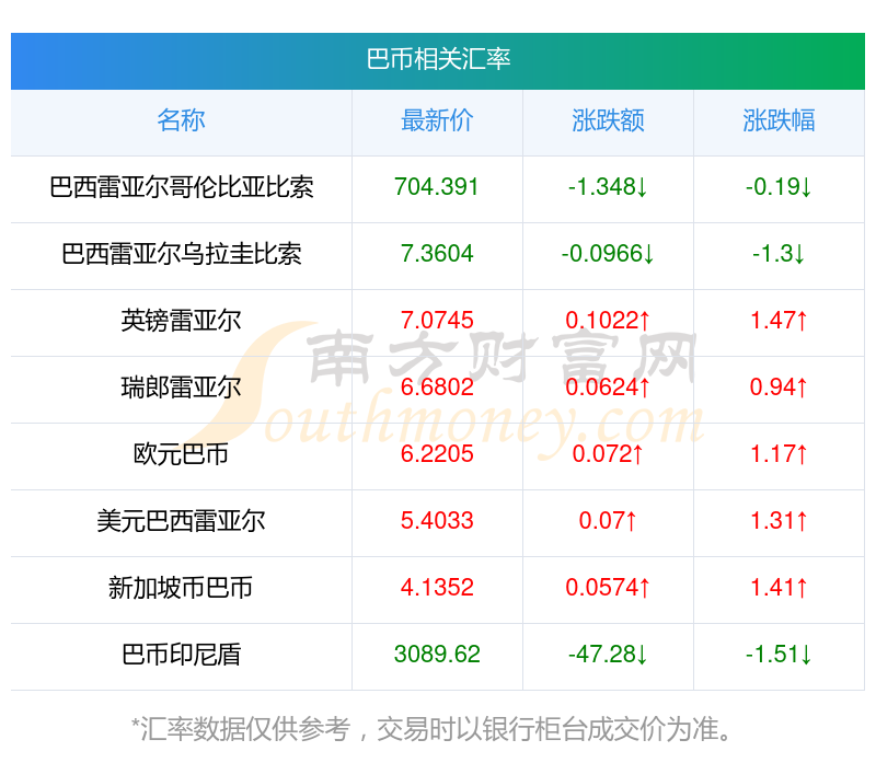 南方財(cái)富網(wǎng)為您提供巴幣對(duì)印尼盾匯率最新價(jià)格詳情。