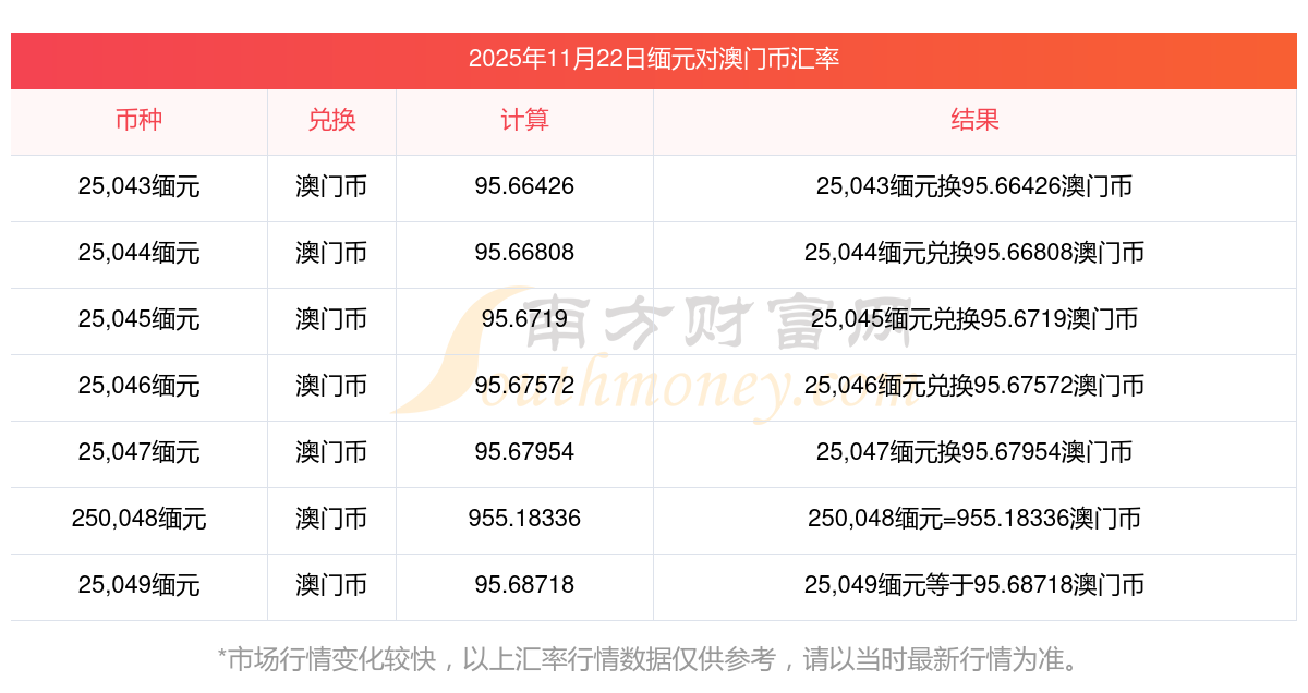 最新2025年11月22日緬元兌換澳門幣匯率是:0.00382