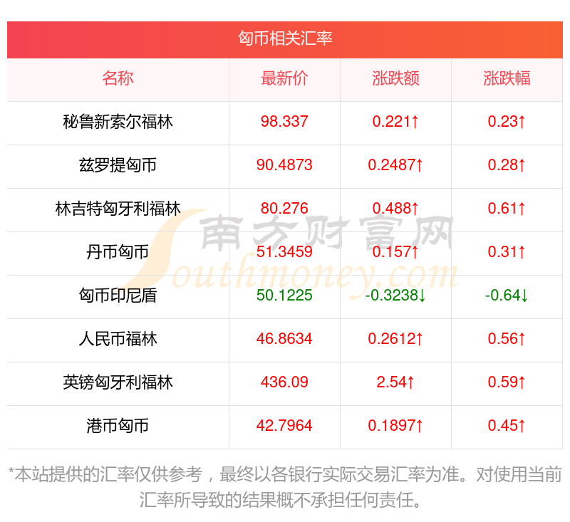 南方財(cái)富網(wǎng)為您提供匈幣對尼日利亞奈拉匯率最新價(jià)格詳情。