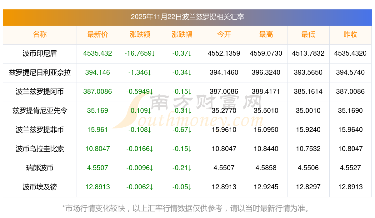 2025年11月22日波蘭茲羅提相關(guān)匯率查詢