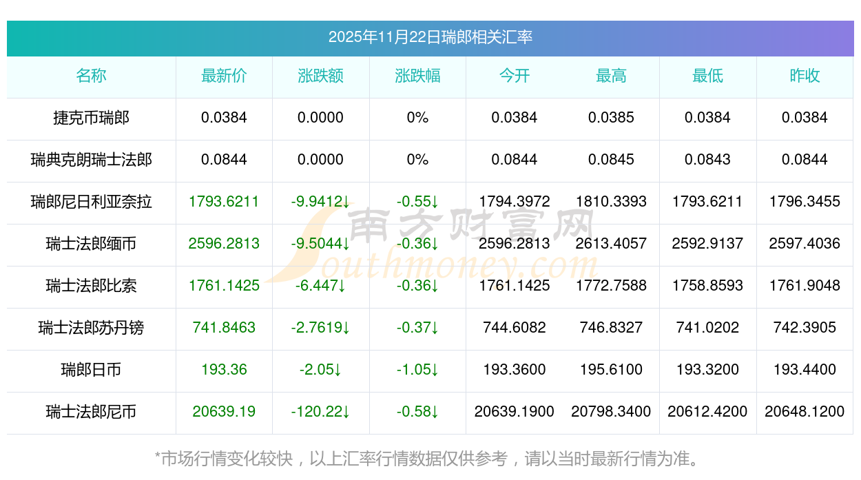 2025年11月22日瑞郎相關(guān)匯率查詢