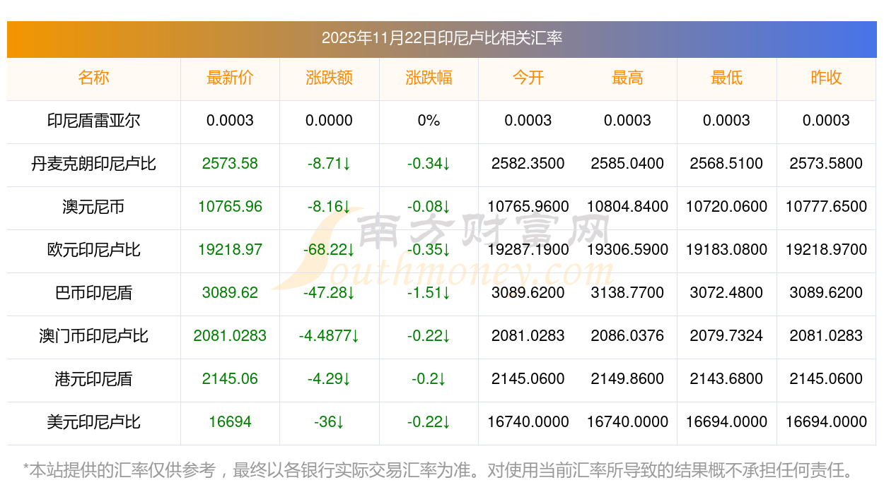 2025年11月22日印尼盧比相關(guān)匯率查詢