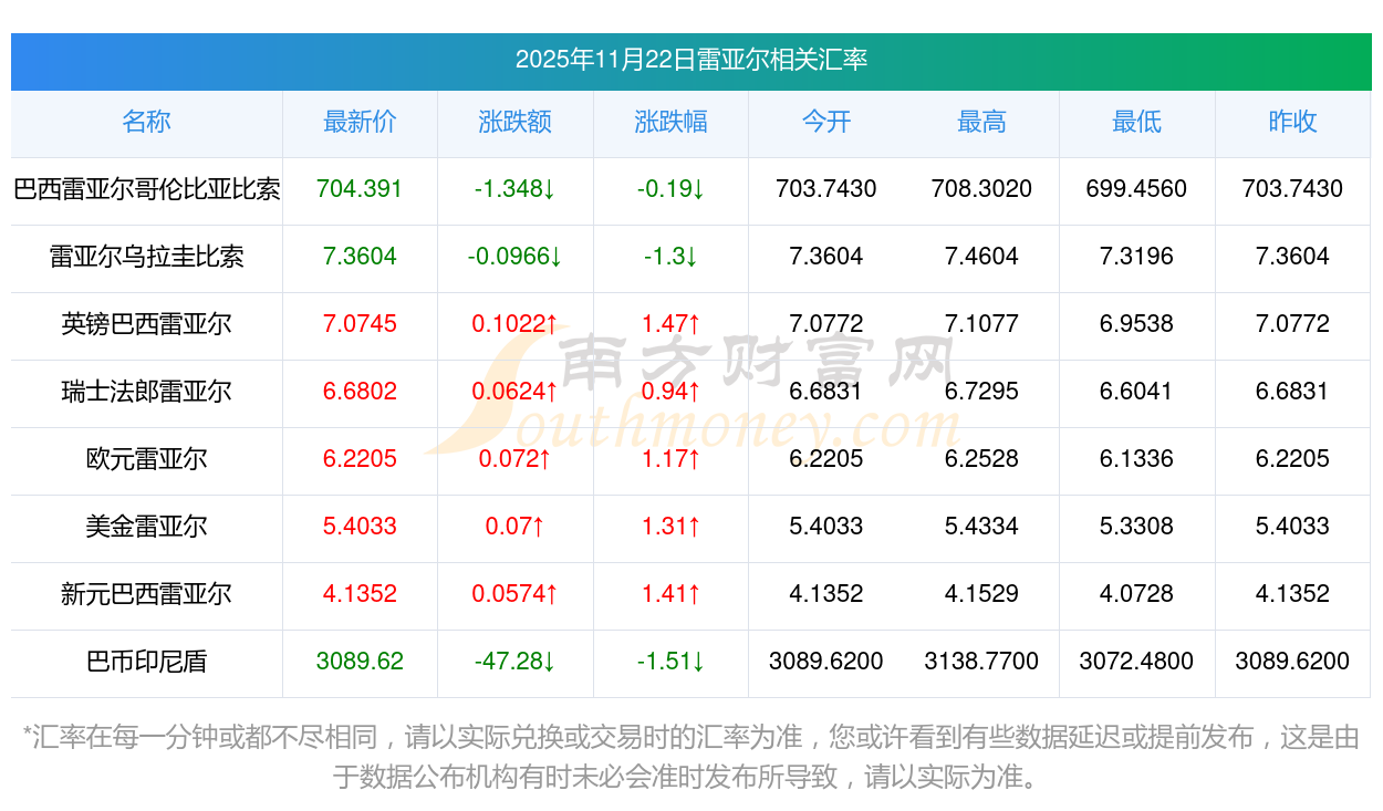 2025年11月22日雷亞爾相關(guān)匯率查詢