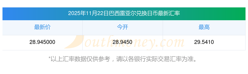 2025年11月22日巴西雷亞爾與日幣的兌換匯率計(jì)算如下: