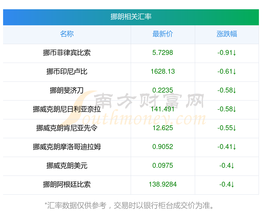 南方財(cái)富網(wǎng)為您提供挪朗對斐濟(jì)刀匯率最新價(jià)格詳情。