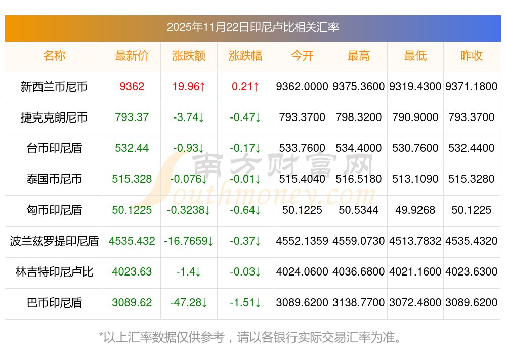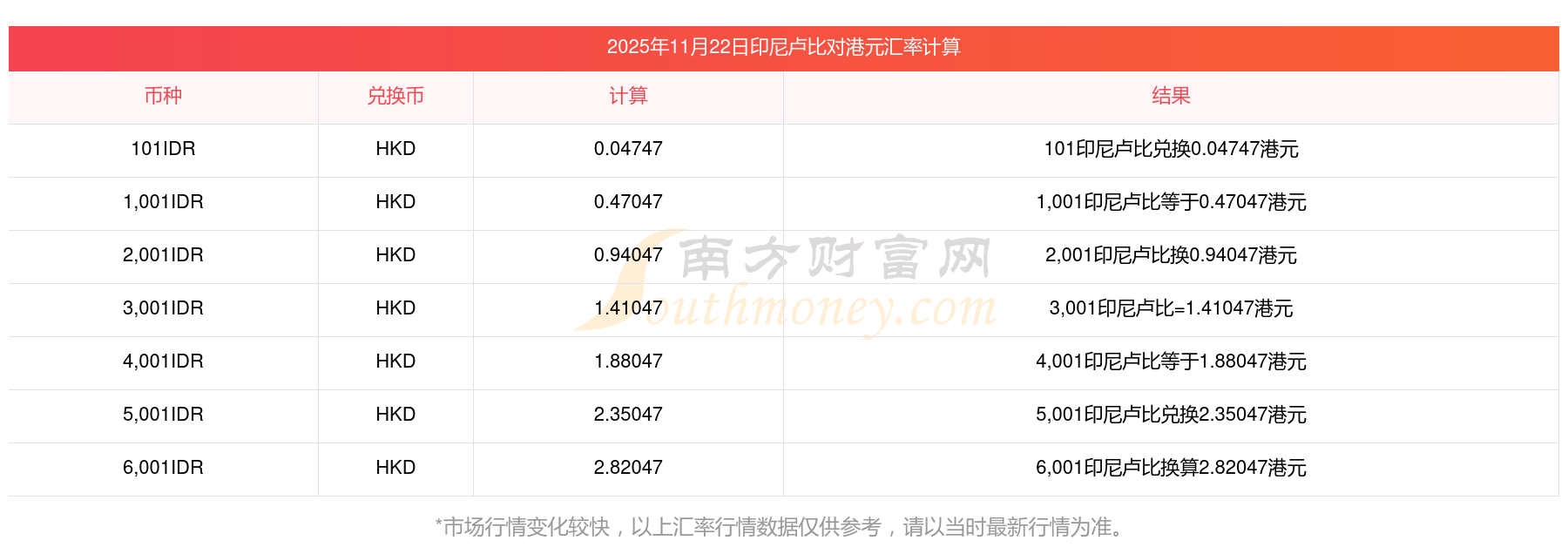 南方財富網(wǎng)為您提供印尼盧比對港元匯率最新價格詳情。