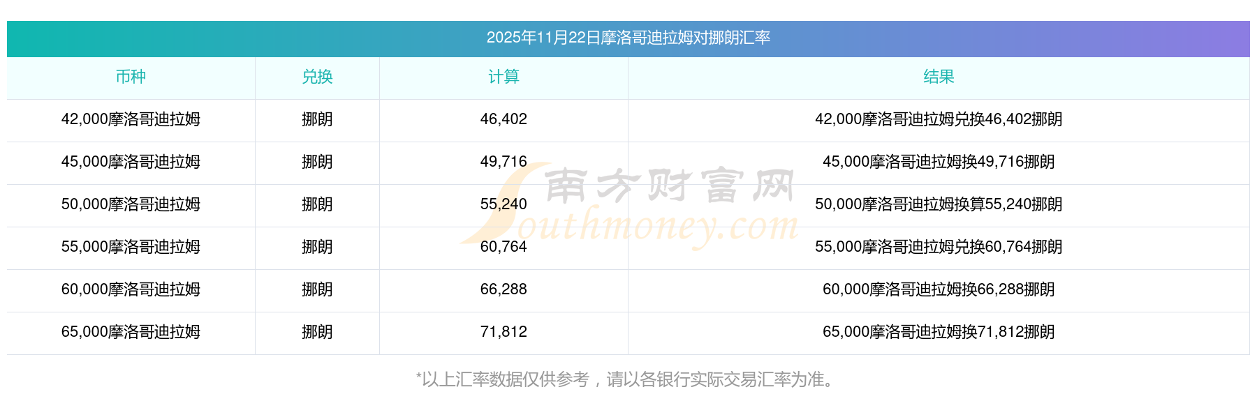今天匯率更新!2025年11月22日92摩洛哥迪拉姆兌換挪朗是多少?