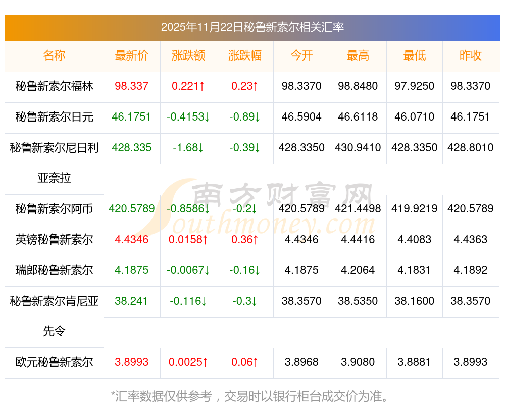 2025年11月22日秘魯新索爾相關(guān)匯率查詢