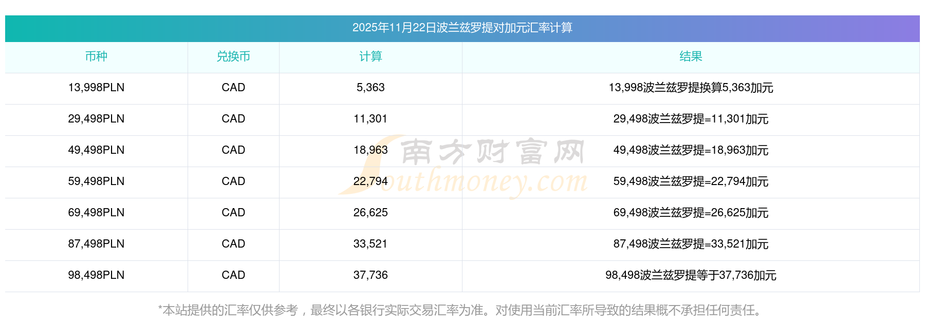 加元外匯查詢 今日90波蘭茲羅提與加元兌換表11月22日