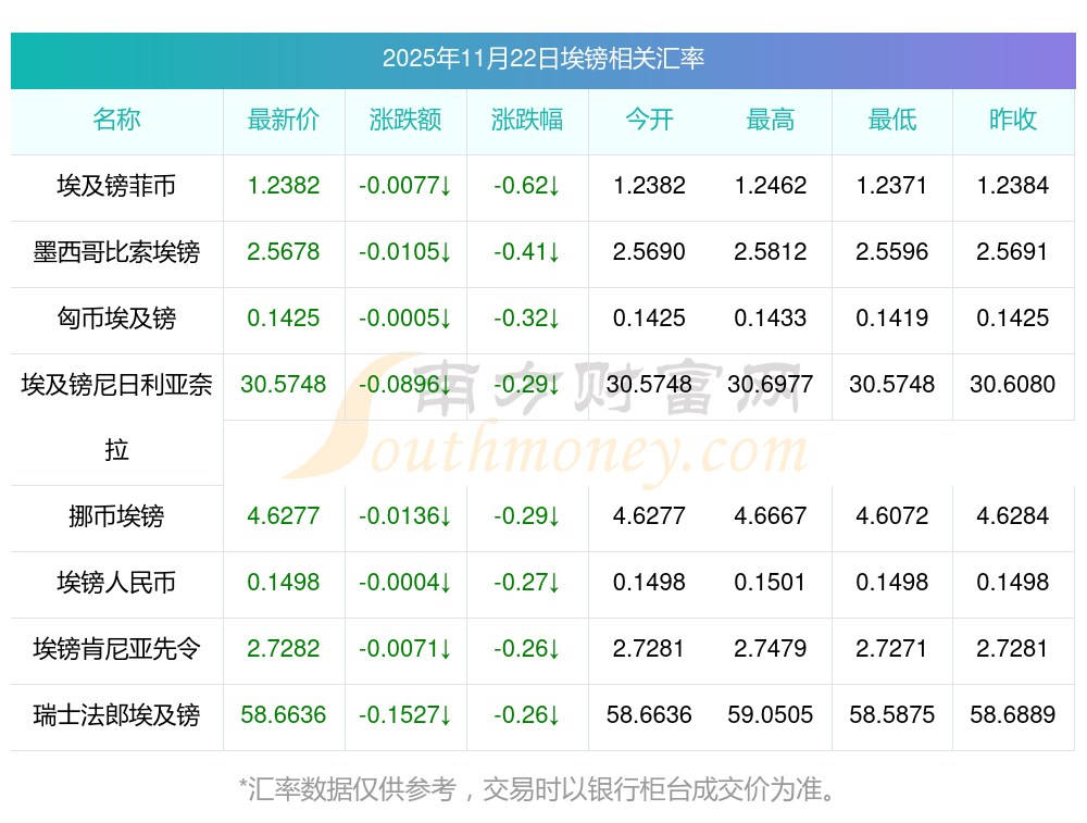 2025年11月22日埃鎊相關(guān)匯率查詢
