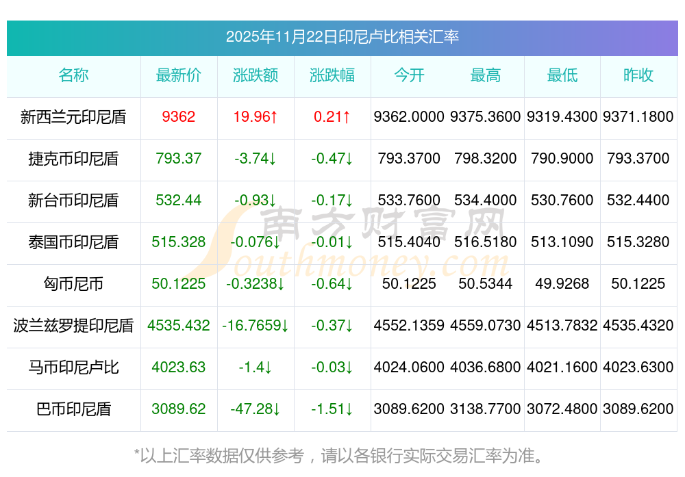 2025年11月22日印尼盧比相關(guān)匯率查詢