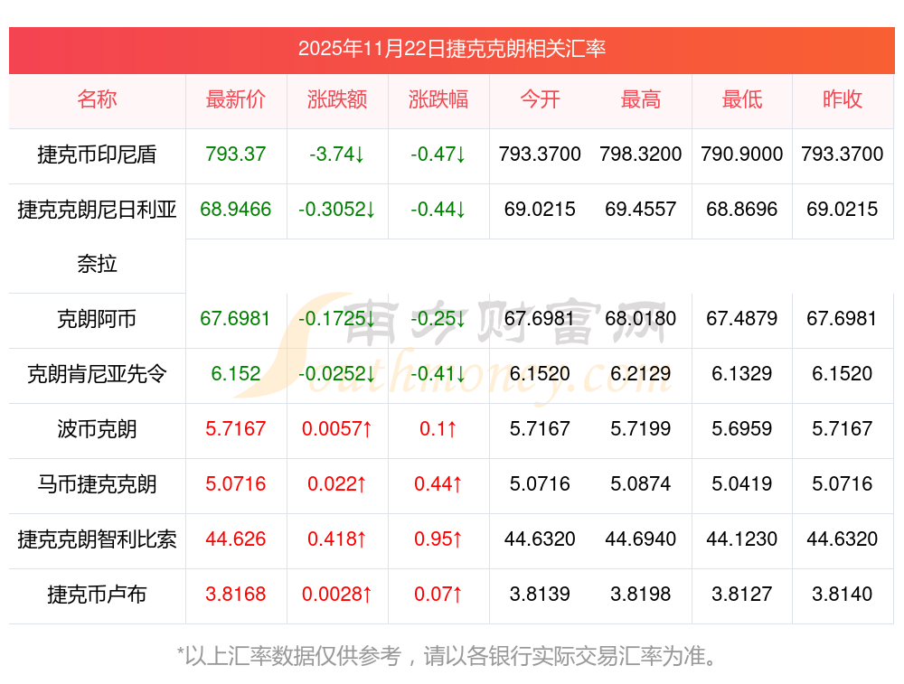 根據(jù)2025年11月22日匯率,捷克克朗兌換哥倫比亞比索匯率最新價180.877000,今開價180.7110,昨收價180.7110,最高價181.4640,最低價178.5670。